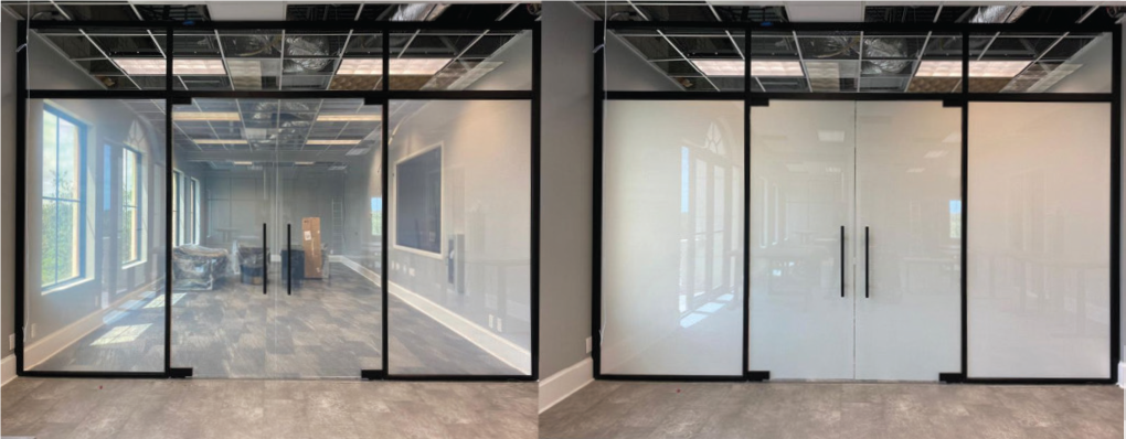 Is a technology that enables glass panels to change their transparency on demand. It typically works by embedding a film often using PDLC (Polymer Dispersed Liquid Crystal) technology—between layers of glass